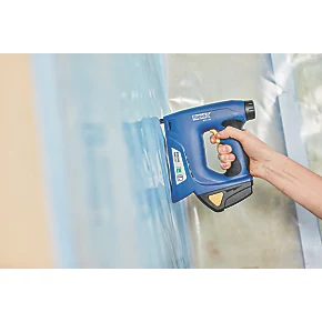 Ideal for everyday tasks such as fastening thin wooden boards or sheet wood and building materials such as insulation foil, vapor guards, plastic wrap, cardboard, paper and other materials, that require good grip from the staple. The high battery performance and fast recharging increase working efficiency, while robust parts and quality construction increase working life. Features a handy safety nose that prevents accidental firing and see-through staple indicator for efficient reloading.